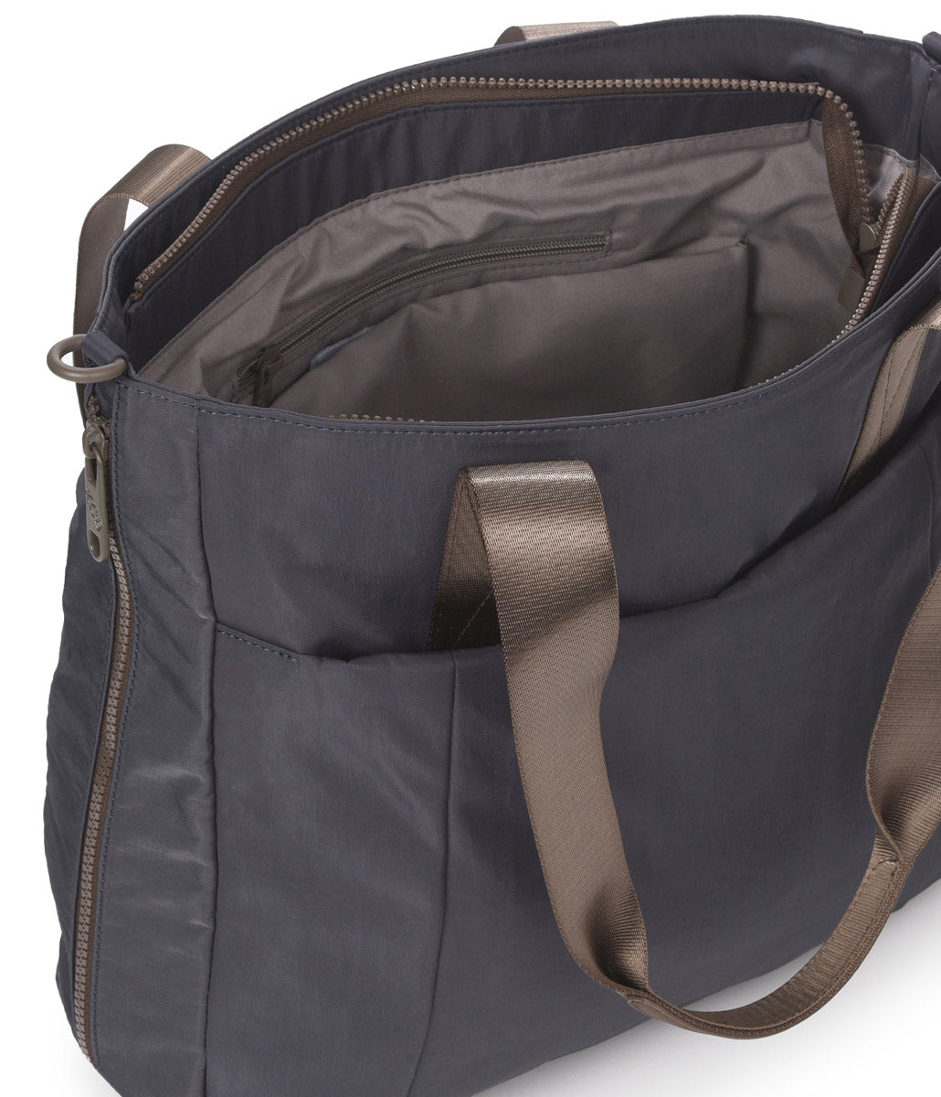 El shopper KCB Balloon combina funcionalidad y estilo con una gran capacidad para acompañarte durante todo el día. Su interior está diseñado para la organización: incluye dos bolsillos abiertos, un bolsillo con cremallera para objetos pequeños y un compartimento acolchado ideal para tablets o portátiles compactos. En el exterior, cuenta con prácticos bolsillos con cremallera tanto en la parte delantera como trasera, perfectos para mantener tus esenciales siempre a mano. Una cremallera decorativa recorre el bolso de esquina a esquina, aportando un toque moderno y sofisticado. Además, puedes llevarlo cómodamente al hombro o cruzado, gracias al asa adicional tipo bandolera.