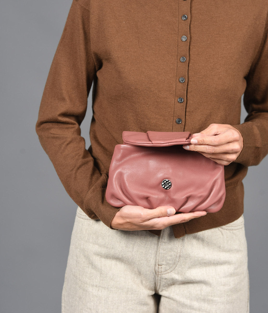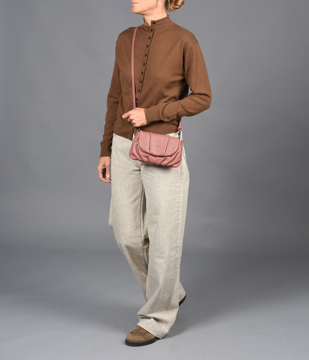 THB – Kleine Umhängetasche aus gewaschenem Leder mit Muschelsaum