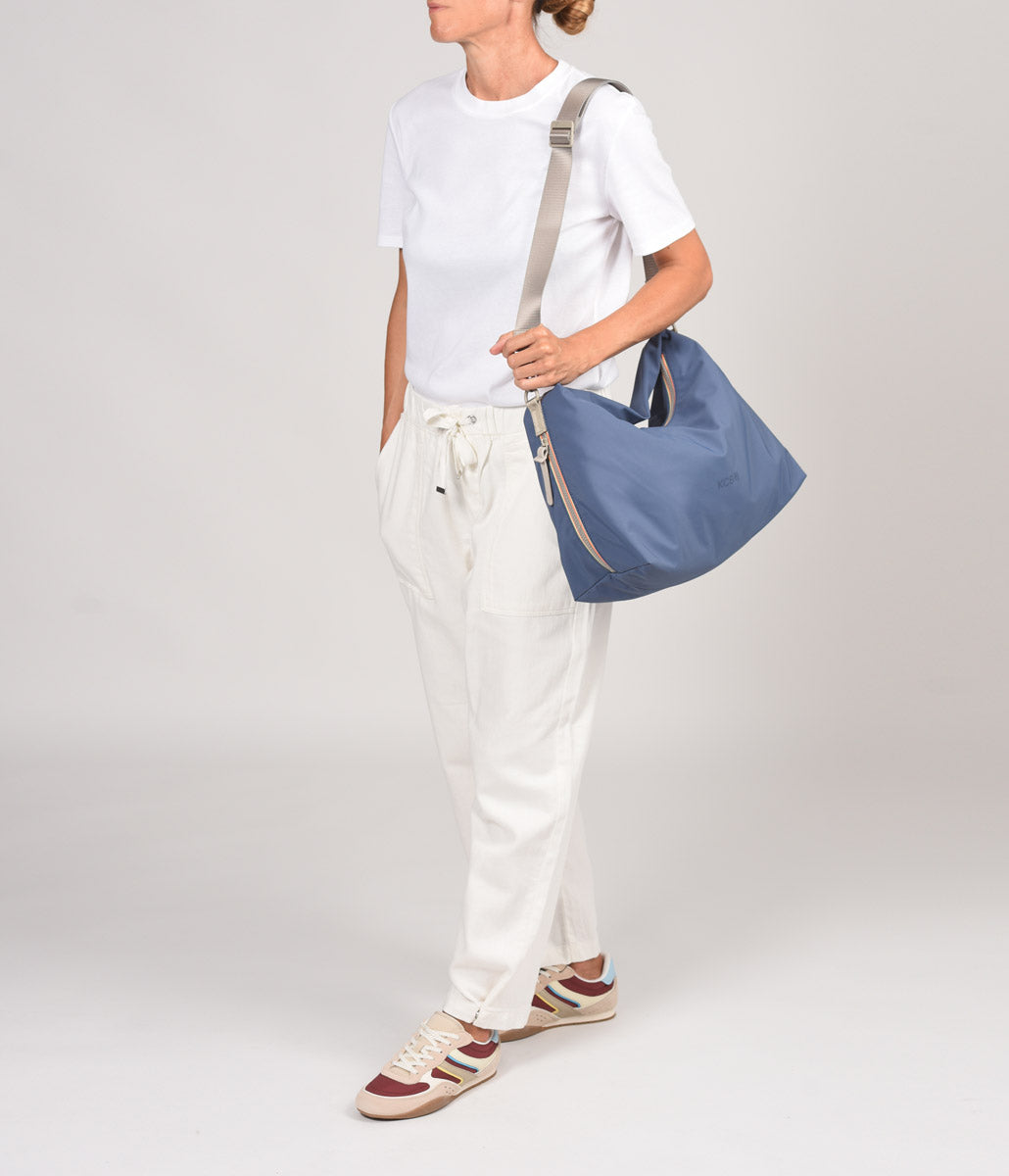 Die kleine KCB Glow Schultertasche ist eine komfortable und funktionelle Option für den Alltag. Innen bietet sie zwei offene Fächer und ein Reißverschlussfach für optimale Organisation Ihrer Sachen. Auf der Rückseite befindet sich ein kleines Reißverschlussfach, ideal für Dinge, die Sie schnell griffbereit haben möchten. Eine praktische, dezent integrierte Seitentasche mit Reißverschluss bietet Platz für eine Flasche, einen Regenschirm oder andere Kleinigkeiten und schützt diese vor Blicken. Dank des verstellbaren Riemens können Sie die Tasche als Schulter- oder Umhängetasche tragen und so jederzeit Ihrem Stil und Ihren Bedürfnissen anpassen.
