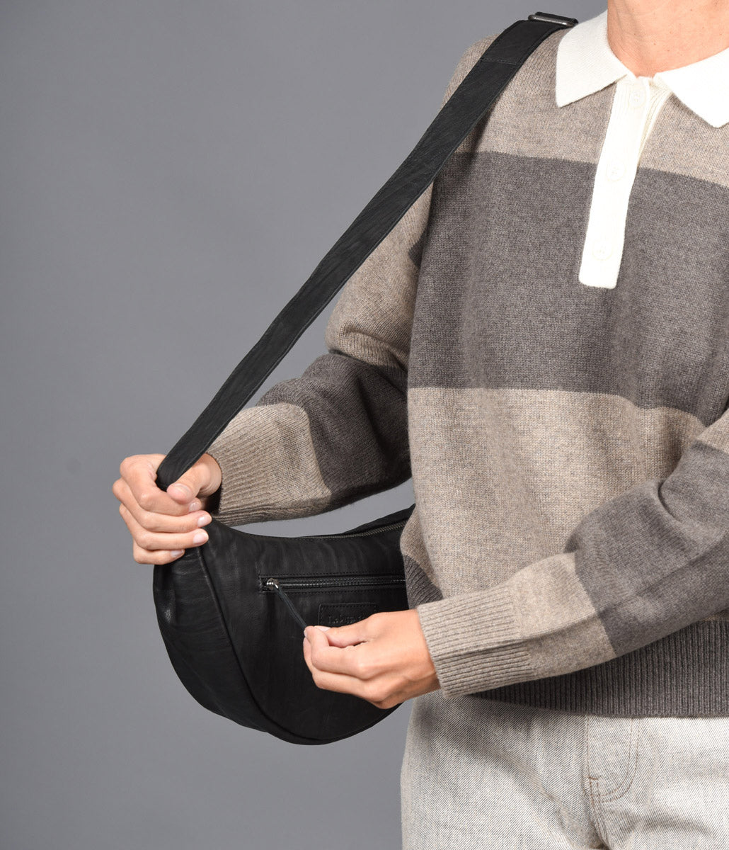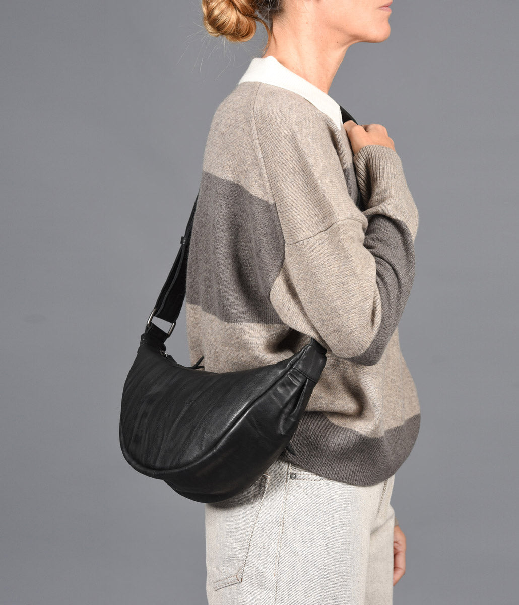THB Sagano – Halbmond-Umhängetasche aus gewaschenem Leder