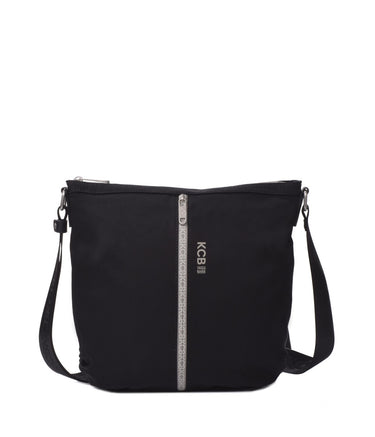 Die große Umhängetasche KCB Combo ist mit farblich abgestimmten Reißverschlüssen versehen. Sie hat eine Tasche auf der Rückseite und eine weitere, vertikal öffnende Tasche auf der Vorderseite. Innen gibt es eine Reißverschlusstasche und zwei offene Taschen. Der Umhängegurt ist verstellbar, so dass du die Tasche nach Belieben tragen kannst.