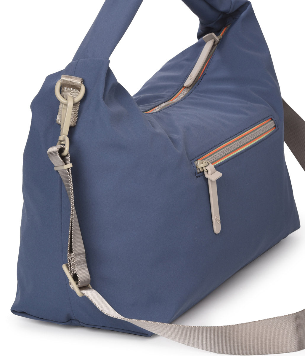 The KCB Glow small shoulder bag is a comfortable and functional option for everyday use. Its interior features two open pockets and one zippered pocket to keep your belongings well-organized. On the back, there's a small zippered pocket ideal for storing items you need to keep within easy reach. It also includes a practical zippered side pocket, discreetly integrated into the bag, perfect for a bottle, umbrella, or other small items, keeping them protected and out of sight. Thanks to the adjustable strap, you can carry it as a shoulder bag or crossbody bag, adapting to your style and needs at any time.