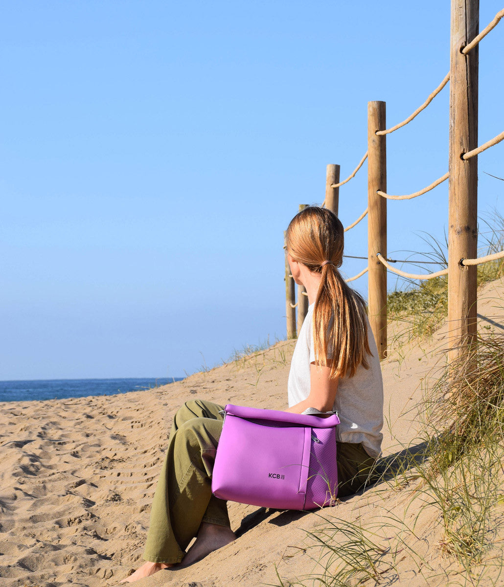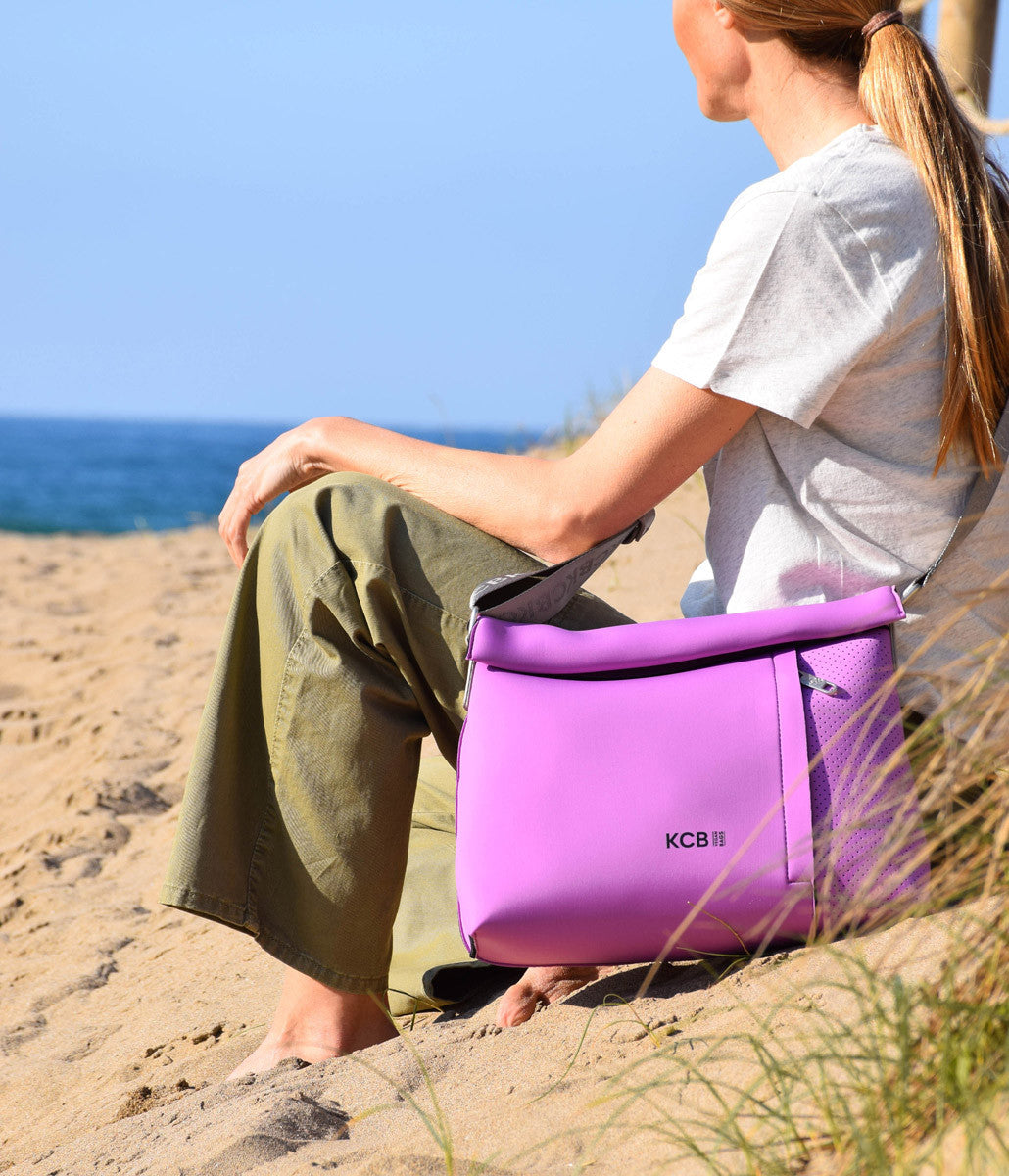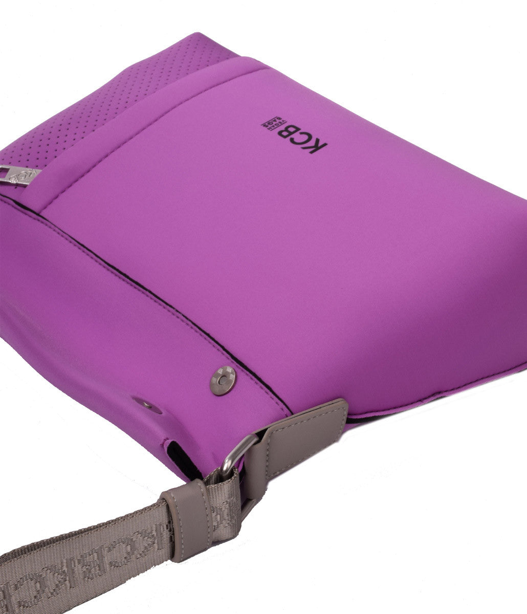 The KCB Neon medium messenger bag is made of 100% neoprene. The interior features two open pockets and one zippered pocket. The exterior features another zippered pocket on the front. Best of all, this messenger bag is anti-theft. This means the main opening is on the back, giving you peace of mind.