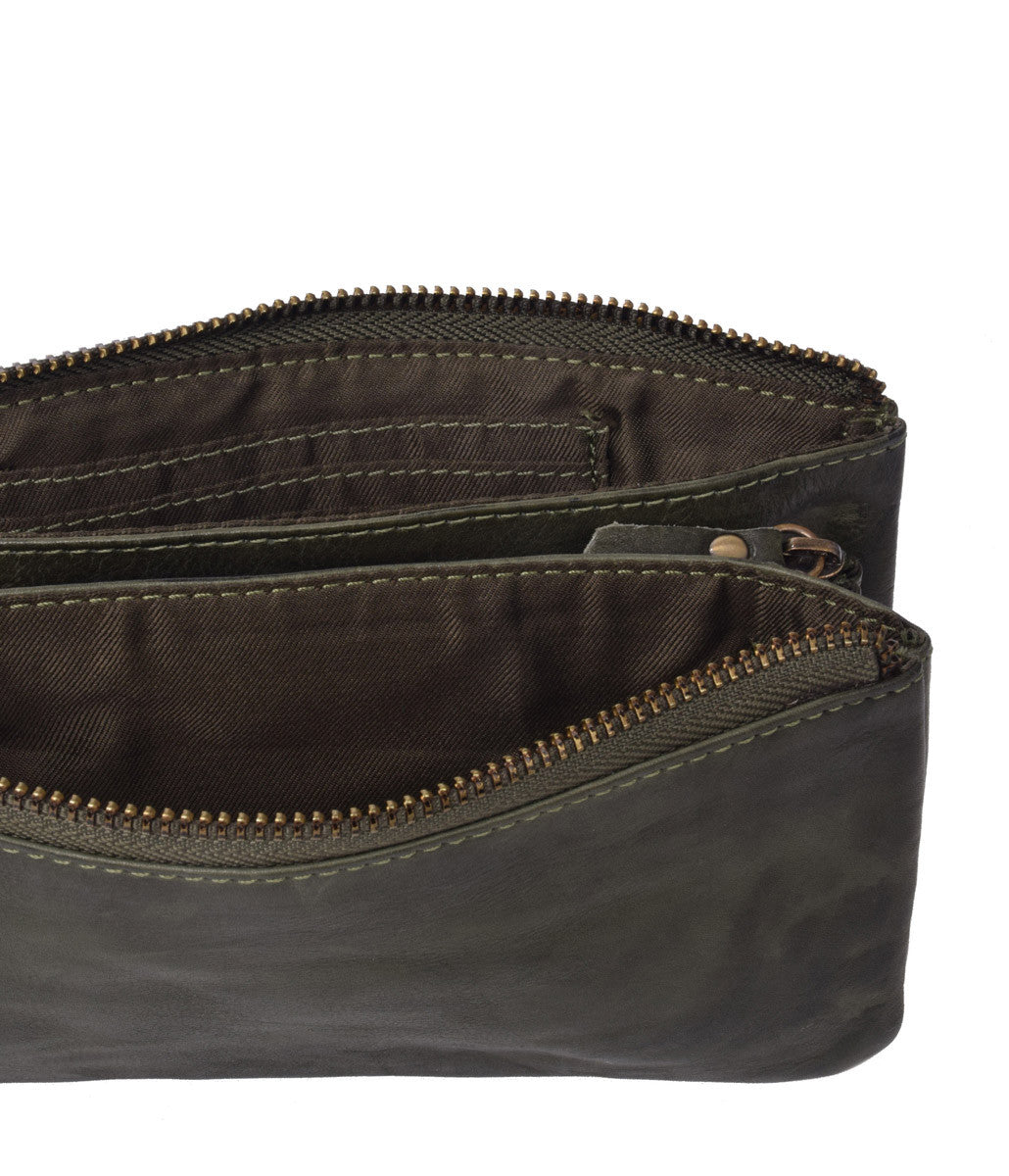 Our large THB Soft washed leather wallet is the perfect size and has all the compartments you've been looking for: inside you'll find three card slots, a zippered coin pocket, and two bill compartments.