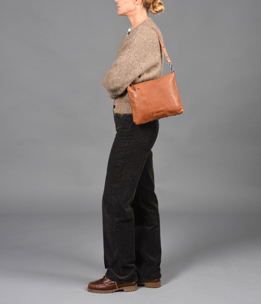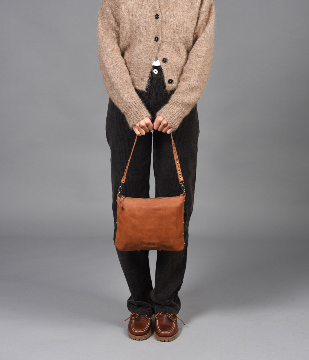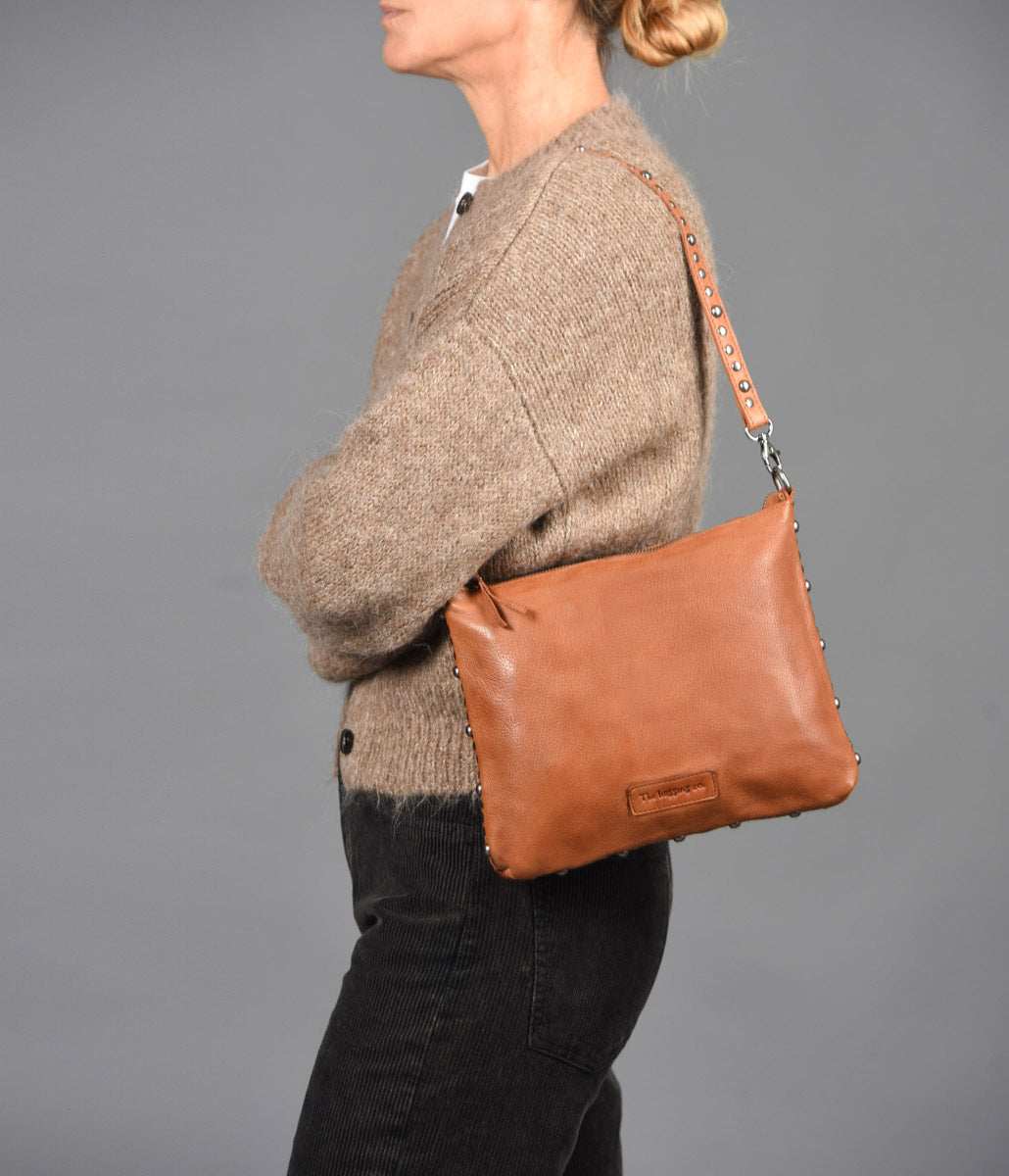 El bolso de hombro de piel lavada THB Points es perfecto para que lleves lo que te haga falta a lo largo del día. Cuenta con dos bolsillos abiertos y un bolsillo con cremallera en su interior para que puedas guardar tus accesorios más pequeños. Puedes llevar el bolso como bolso de hombro o bandolera gracias al asa de cruzar adicional que tiene. Los detalles en tachas metálicas elevan su diseño con un sutil toque de carácter y distinción.