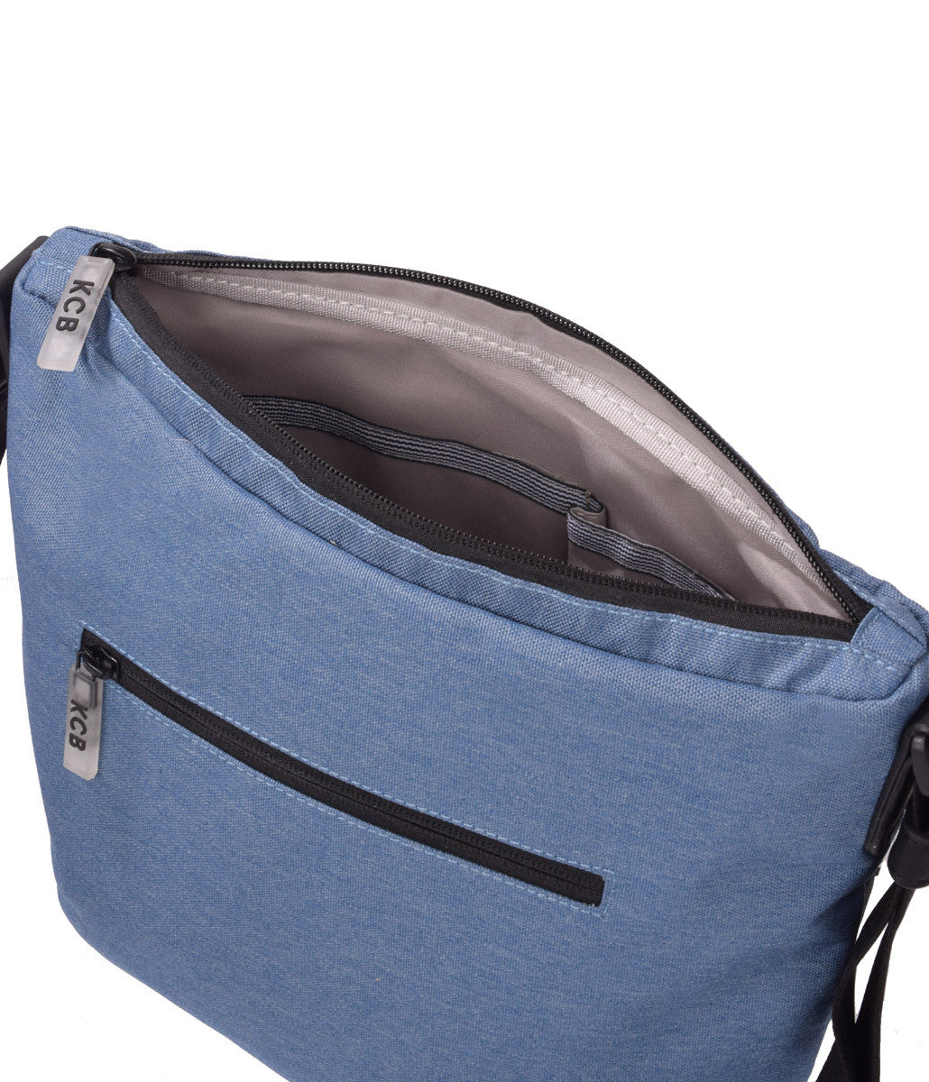 This shoulder bag features the classic shape of KCB's flagship shoulder bags and the sporty touch of our Cinta Collection. Lightweight and durable, this nylon bag features a large front pocket, a back pocket, and three interior pockets (two open and one zippered).