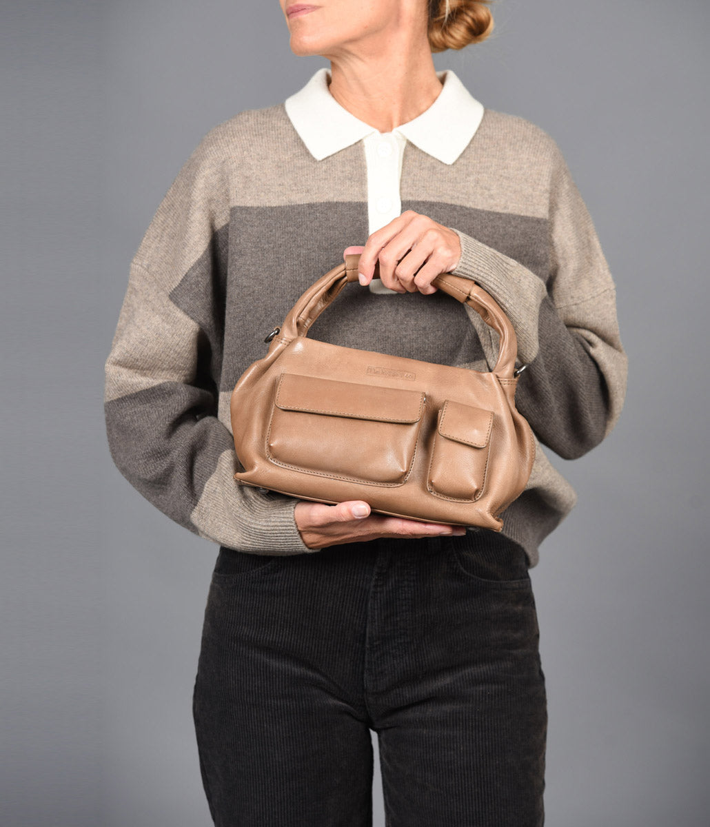 The washed leather THB Pocket handbag combines style and functionality, making it a practical choice for everyday use. Inside, it features an open pocket and a zippered pocket, perfect for keeping your belongings organized and secure. The back features an exterior zippered pocket, and the front features two small flap pockets with magnetic closures for smaller accessories. In addition to the handle, it includes an additional adjustable strap that allows you to comfortably carry it crossbody, adapting to your style and needs.