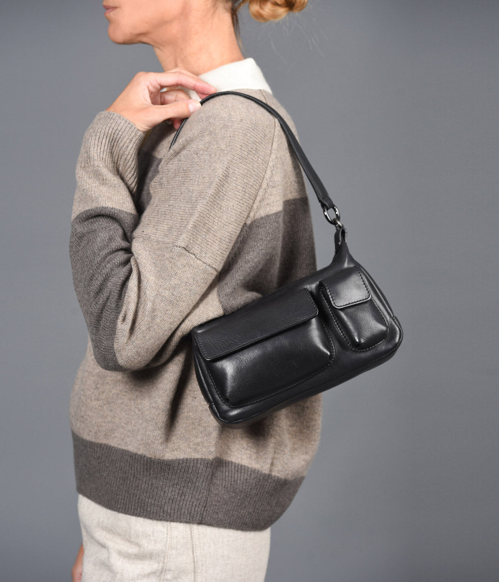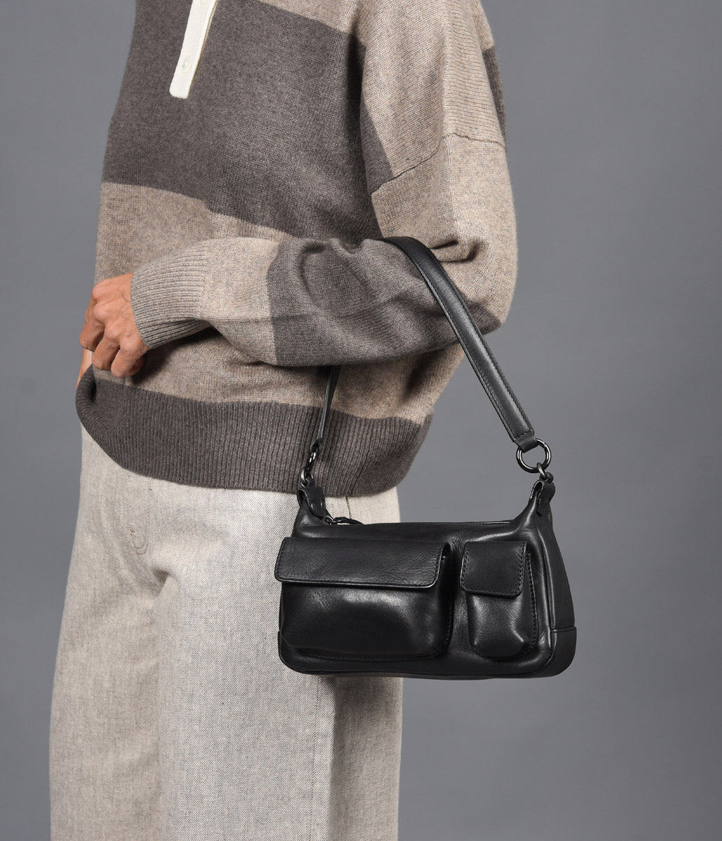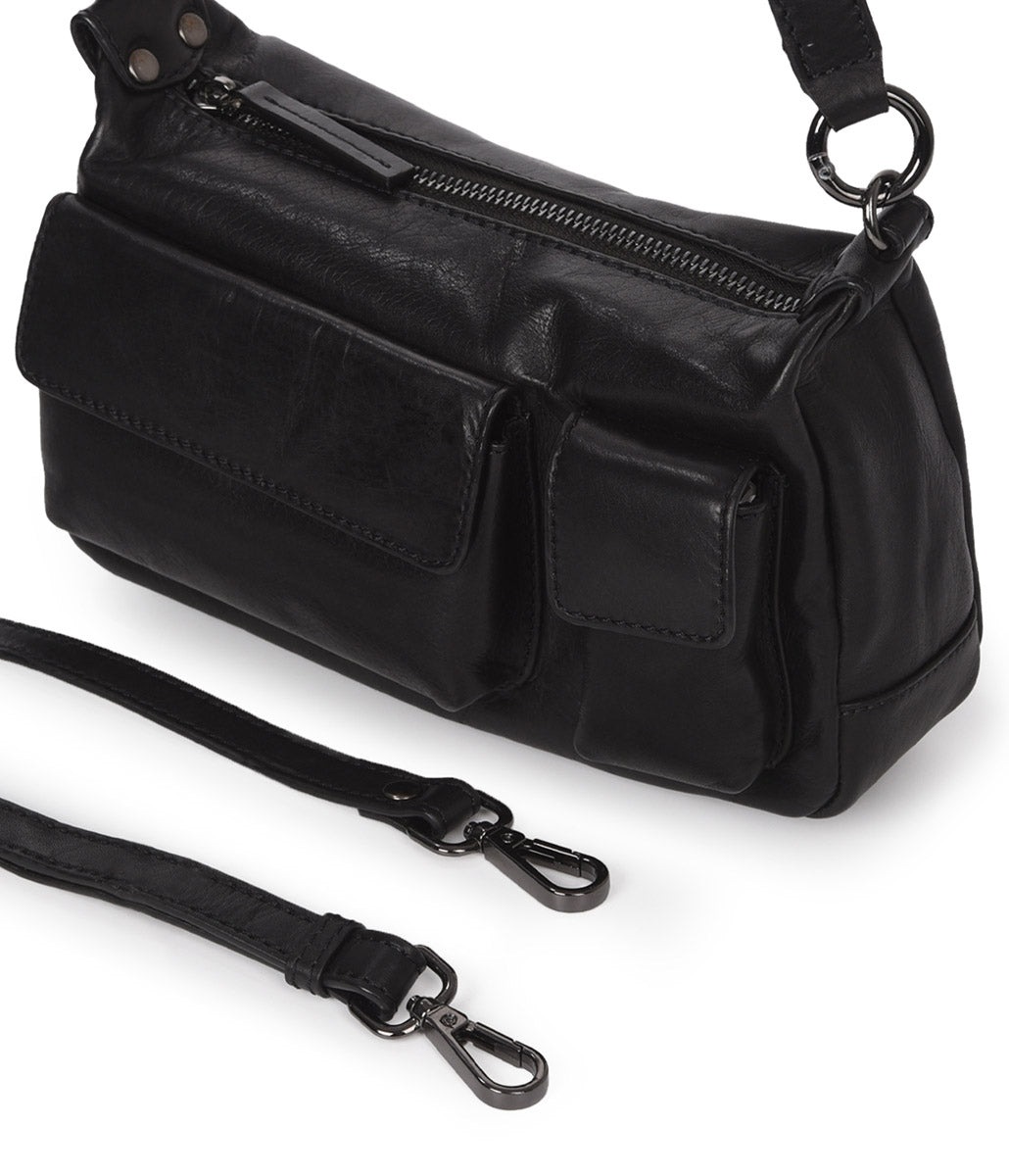 The THB Pocket washed leather shoulder bag features a practical and functional design, ideal for everyday use. It has an open pocket and a zippered interior pocket so you can store your belongings neatly. The back includes another zippered pocket, while the front features two small flap pockets with magnetic closures to keep your smaller accessories organized and always at hand. You can wear the bag as a shoulder bag or as a crossbody bag thanks to the additional crossbody strap.