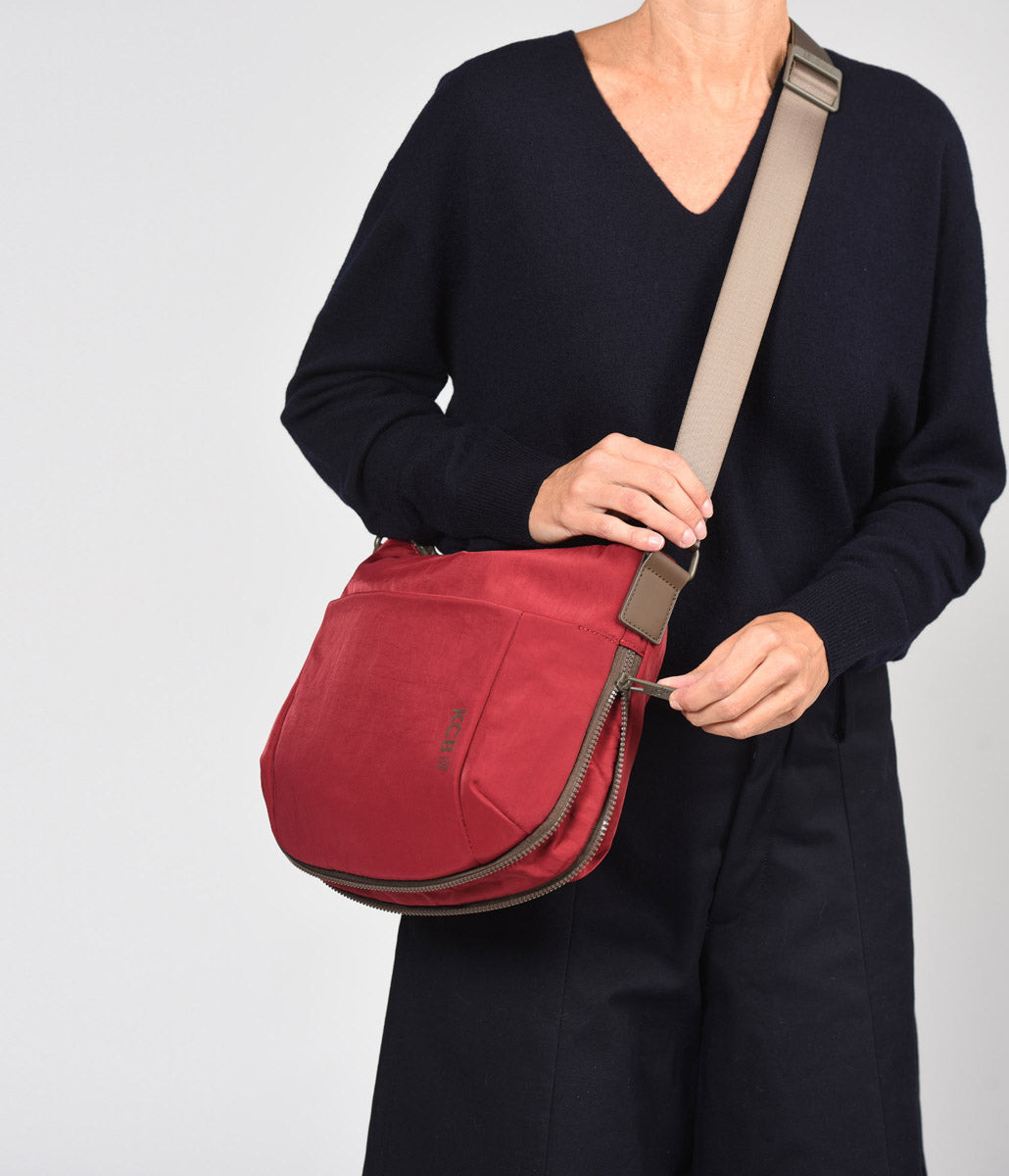 The KCB Balloon crossbody bag has the ideal capacity to carry everything you need throughout the day. It features two open pockets and a zippered interior pocket for storing smaller accessories. It also has a zippered pocket on the back and front exterior to keep your most important belongings close at hand. A decorative exterior zipper runs from corner to corner, adding a modern and stylish touch. Thanks to its adjustable strap, you can carry it however it suits you best.