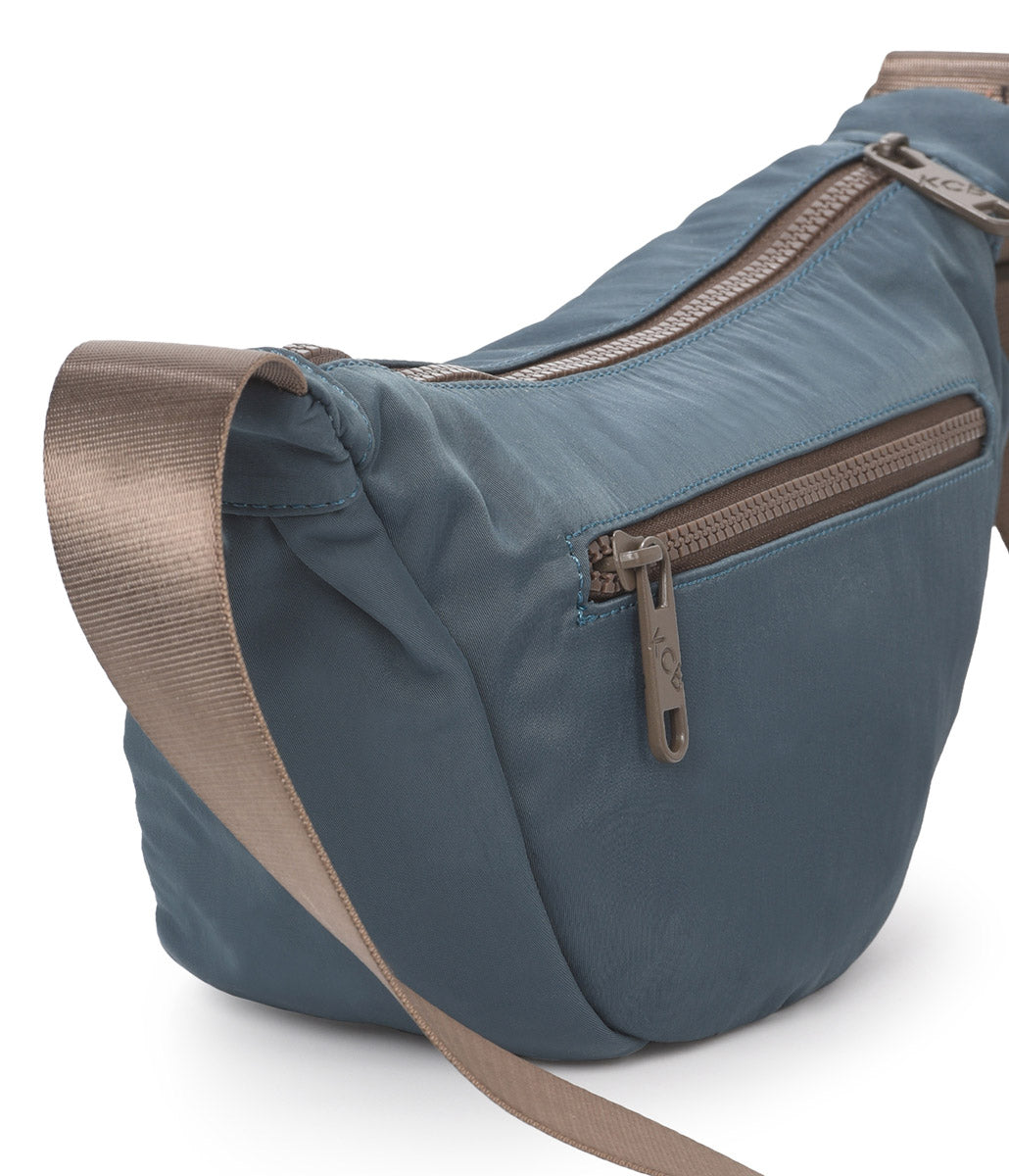 The KCB Balloon crescent-shaped shoulder bag is the perfect size for carrying your most important everyday accessories. It features a zippered pocket on the inside and another on the back exterior to keep your belongings organized and accessible. Adjustable straps help you carry it at the height and size that best fits you.