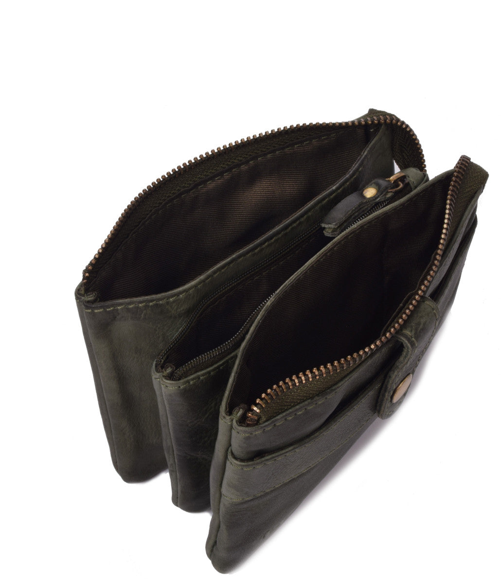 Le portefeuille THB de taille moyenne en cuir souple lavé comporte un compartiment pour les billets et plusieurs fentes pour les cartes. Le compartiment zippé peut être utilisé pour ranger des pièces de monnaie.