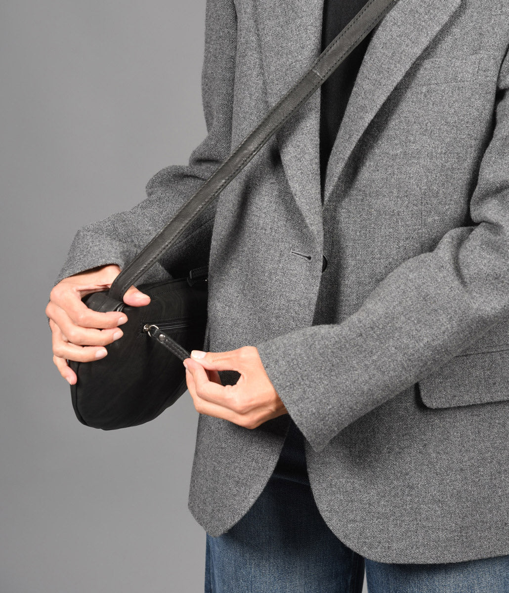 • Entretien : Le sac ne peut pas être lavé en machine. Pour enlever une tache, utilisez un chiffon humide avec de l'eau à moins de 30 °C. Commencez par nettoyer les zones cachées pour voir comment le tissu réagit au nettoyage.