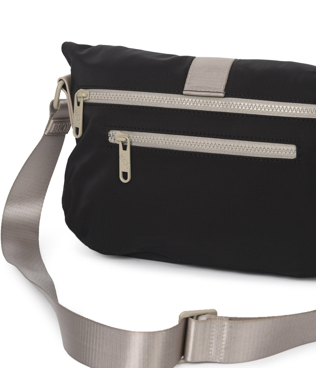 La bandolera antirrobo pequeña KCB Chain es perfecta para llevar contigo tus pertenencias a donde quiera que vayas. Su apertura principal de cremallera se encuentra en la parte trasera, lo que te dará más seguridad a la hora de llevarla por la calle o transporte público. Cuenta con dos bolsillos abiertos y uno con cremallera en la parte interior para que puedas tener tus pertenencias organizadas. Además, tiene un bolsillo con cremallera en la parte exterior trasera y delantera (esta última oculta mediante una solapa) para que puedas acceder a tus accesorios más pequeños. La longitud de las asas es ajustable para que la puedas llevar con total comodidad.