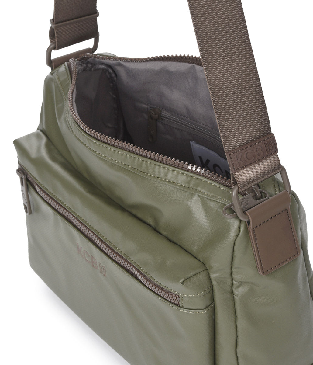 La bandolera pequeña KCB Square tiene un diseño compacto y funcional, ideal para llevar lo esencial con comodidad. En su interior cuenta con dos compartimentos: un bolsillo abierto para acceso rápido y otro con cremallera que asegura tus objetos más importantes. En el exterior, dispone de dos bolsillos con cremallera, uno en la parte frontal y otro en la trasera, perfectos para guardar accesorios o documentos que necesites tener siempre a mano. Gracias a sus asas ajustables, podrás llevarla como mejor se adapte a ti.