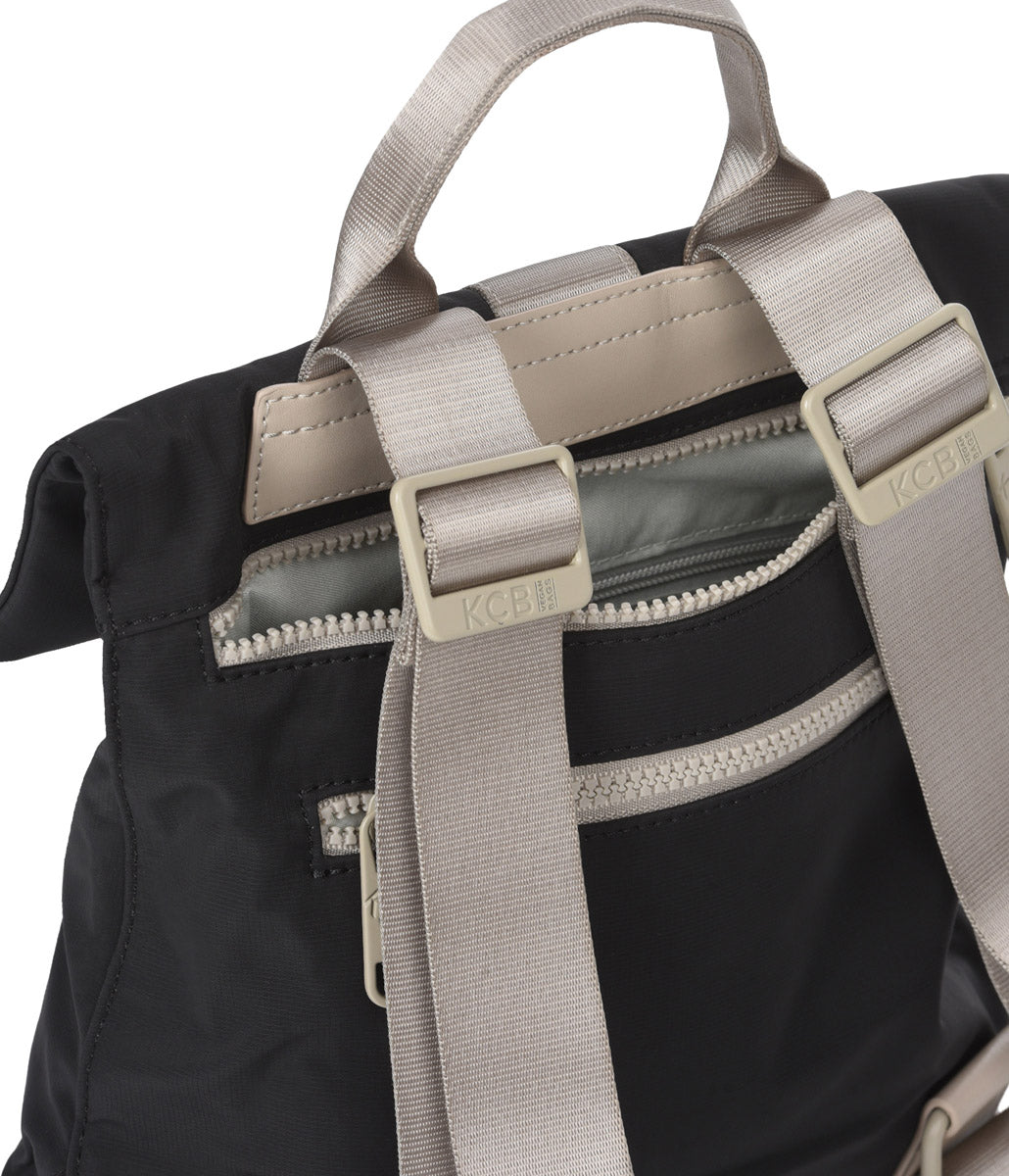 La mochila antirrobo pequeña KCB Chain es perfecta para llevar contigo tus pertenencias a donde quiera que vayas. Su apertura principal de cremallera se encuentra en la parte trasera, lo que te dará más seguridad a la hora de llevarla por la calle o transporte público. Cuenta con un bolsillo abierto y otro con cremallera en la parte interior para que puedas tener tus pertenencias organizadas. Además, tiene un bolsillo con cremallera en la parte exterior trasera y delantera (esta última oculta mediante una solapa) para que puedas acceder a tus accesorios más pequeños. La longitud de las asas es ajustable para que la puedas llevar con total comodidad.