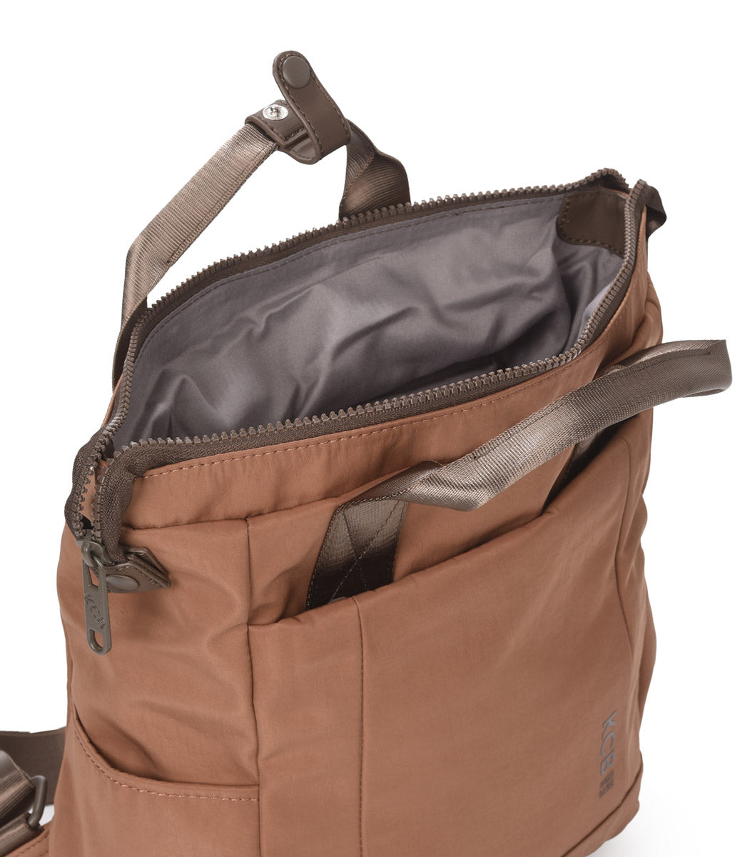 La mochila pequeña KCB Balloon se convertirá en tu acompañante diario gracias a su diseño y capacidad. En la parte interior dispone de dos bolsillos abiertos, otro con cremallera y un compartimento acolchado para guardar una tablet. En la parte exterior, tanto delante como detrás, cuenta con un bolsillo con cremallera para que puedas llevar a mano tus accesorios más pequeños. Además, dispone de dos aperturas en los laterales con capacidad suficiente para llevar contigo una botella o paraguas pequeño. Incluye una cremallera exterior decorativa que recorre el producto de esquina a esquina, aportando un toque moderno y estilizado. Podrás llevarlo a la altura que quieras gracias a sus asas ajustables.